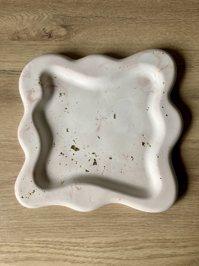 Le vide-poches Simone, d’une longueur de 17 cm, est une pièce unique en plâtre, façonnée à la main. Confectionné à partir d’un mélange de plâtre et de colorants en poudre, chaque modèle est coulé dans un moule, donnant naissance à des marbrures et des teintes aléatoires qui rendent chaque exemplaire totalement unique.